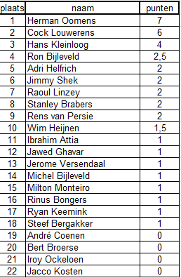Na winst van Rens op Bert is hij gestegen naar een gedeelde 5e t/m 9e plek op afgelopen vrijdag de 13e.